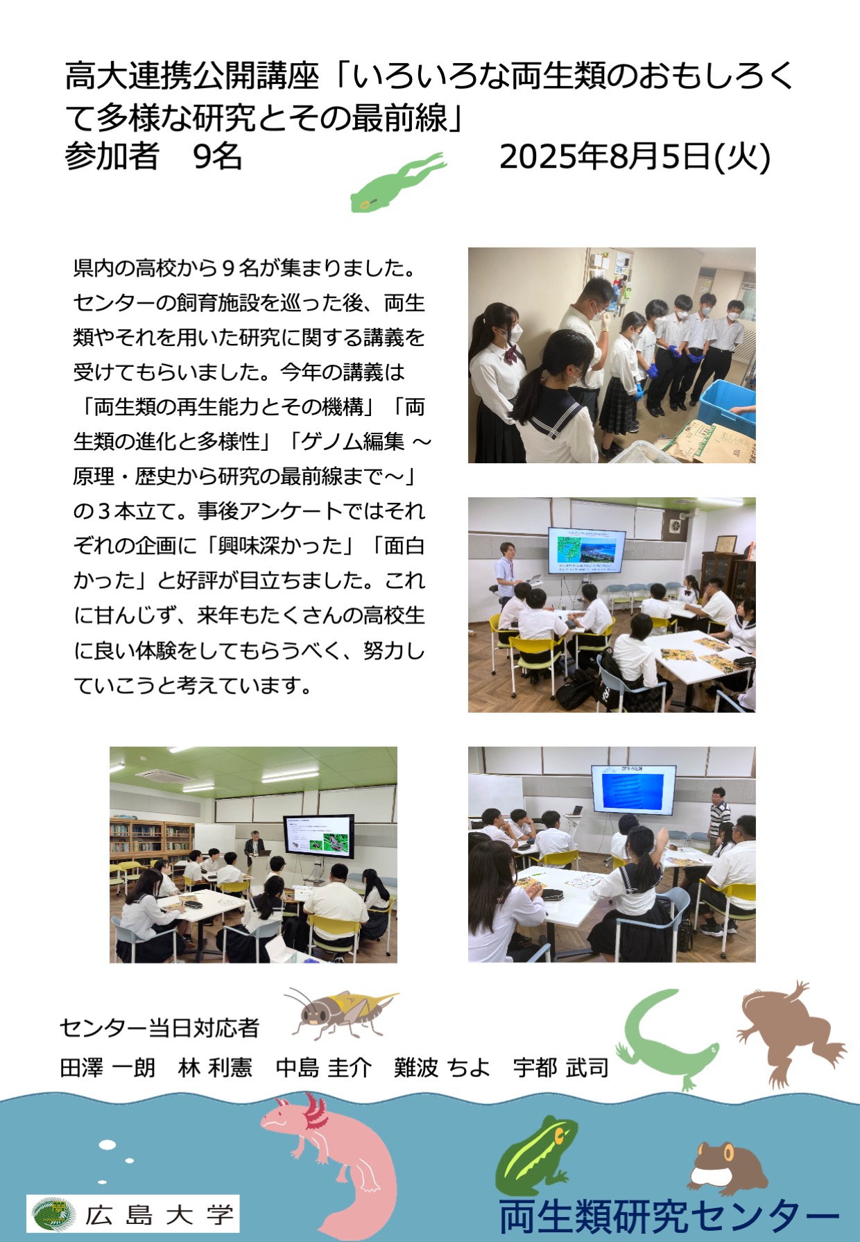 高大連携公開講座「いろいろな両生類のおもしろくて多様な研究とその最前線」を開催しました
