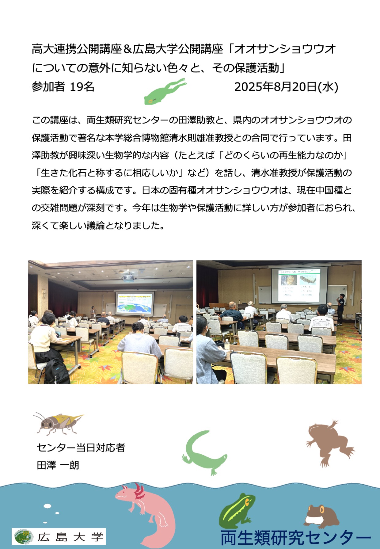 高大連携公開講座「オオサンショウウオについての意外に知らない色々と、その保護活動」を開催しました