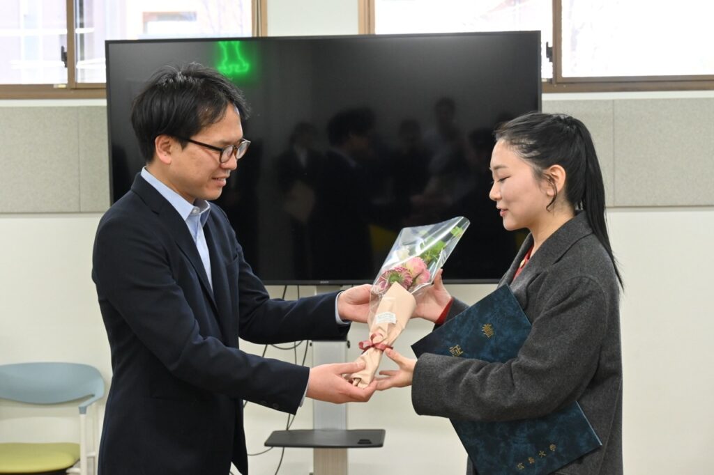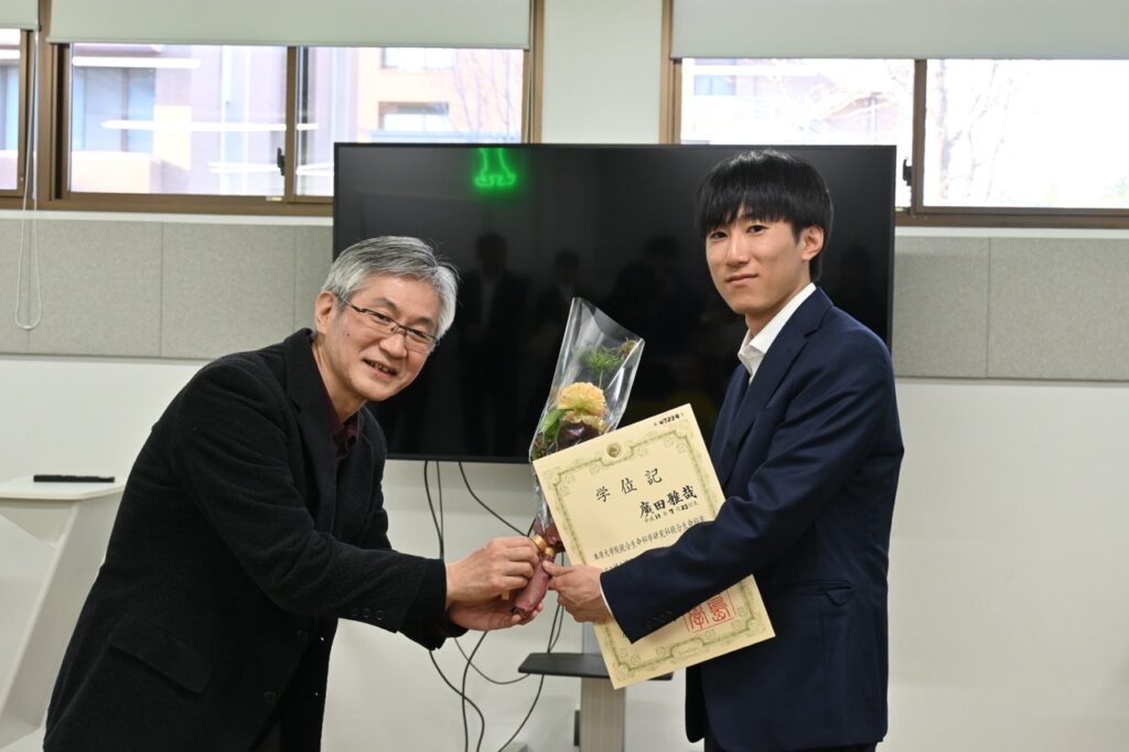 木根森くん、島本さん、原田くんは大学院統合生命科学研究科の博士課程前期を修了されました。3人は2022年の秋から3年半の間、荻野研で熱心に研究を取り組んで来ました。3年半本当にお疲れ様でした、修了おめでとうございます!今後もますますのご活躍を応援しています。廣田くんも大学院統合生命科学研究科の博士課程前期を修了しました。来年度は博士課程後期に進学し、今後も荻野研で研究活動を続けていきます。