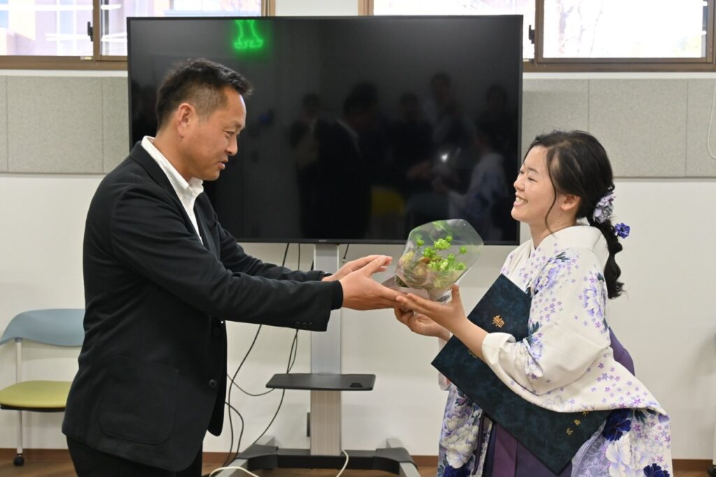 今年も3月23日に春季卒業式が行われ、大学院生の木根森くん、島本さん、原田くん、廣田くん、大学生の大橋さん、前田くん、山本さんが卒業されました。
